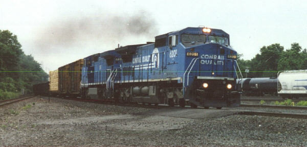 Conrail C40-8W 6201 and LMS C40-8W 737 are hard at work as ALCA-3 enters the Trenton Line at